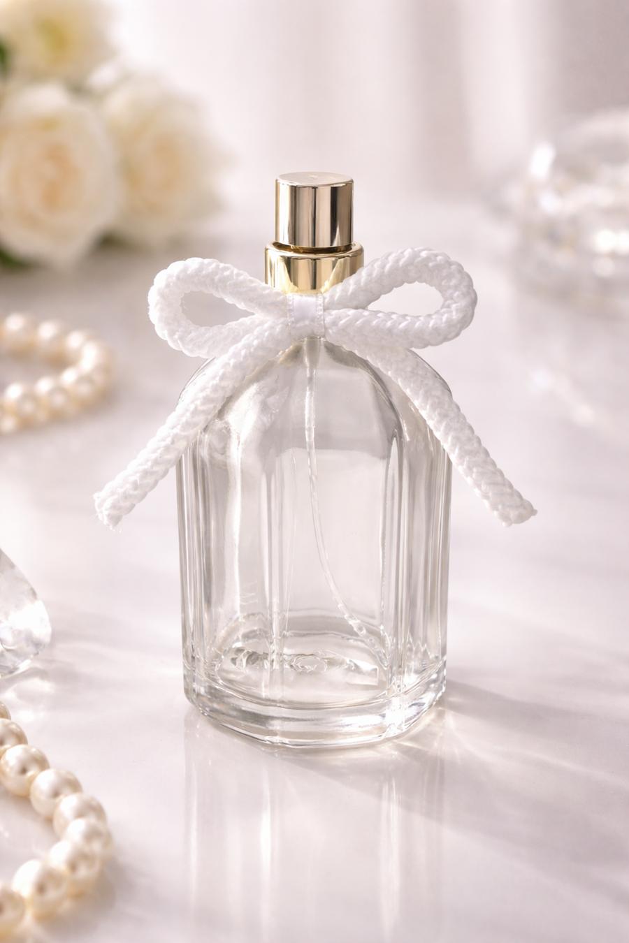 Parfüm şişelerine zarif, modern ve dikkat çekici bir görünüm kazandıran bu beyaz örgü fiyonk tasarımı, sade şıklığıyla öne çıkan özel bir aksesuardır. Yumuşak dokusu ve estetik formu sayesinde kozmetik ve hediye sunumlarında premium bir görünüm sağlar, ürünün algılanan değerini artırır.