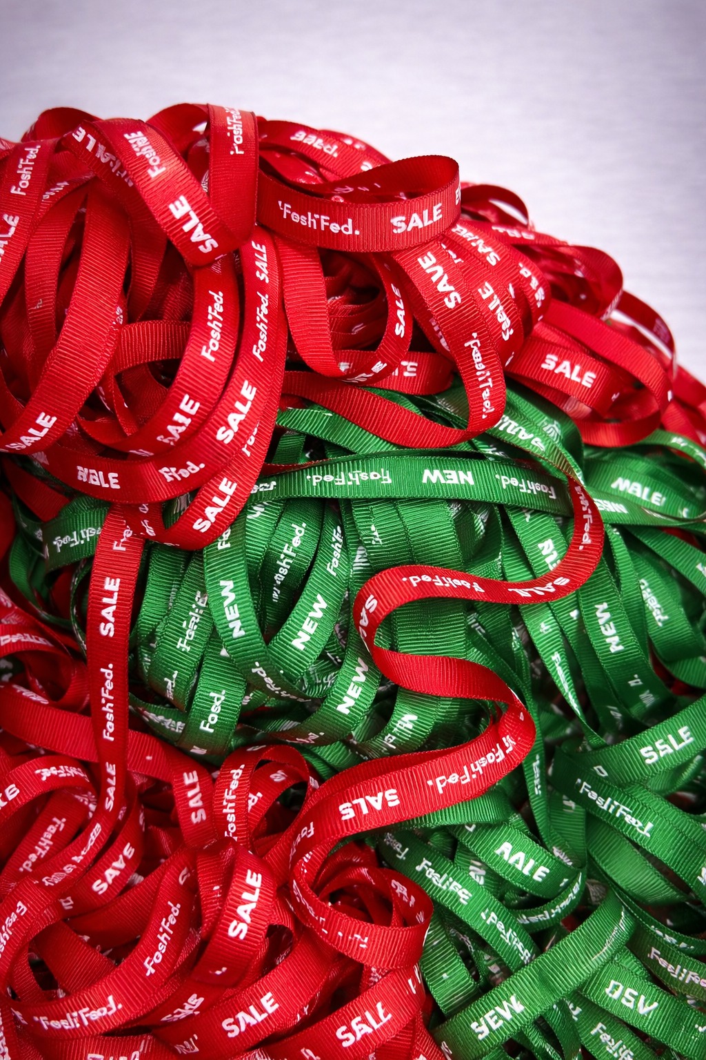 Canlı kırmızı ve yeşil renkleriyle öne çıkan bu baskılı grogren kurdele, ambalaj ve kampanya sunumlarına dikkat çekici bir görünüm kazandırır. “Sale” ve “New” gibi baskı detayları sayesinde özellikle perakende, mağaza, hediye paketi ve özel dönem çalışmalarında güçlü bir görsel tamamlayıcı olarak kullanılır.